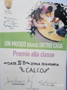 La Classe 3B sec Calco vince il primo premio del concorso “UN MUSEO (QUASI) DIETRO CASA”