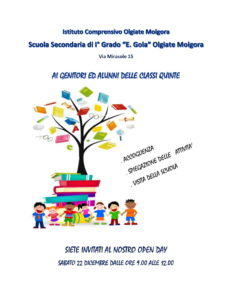 22 DICEMBRE 2018OPEN DAYSECONDARIA DI PRIMO GRADO – Olgiate MolgoraDalle ore 9.00 alle ore 12.00 |